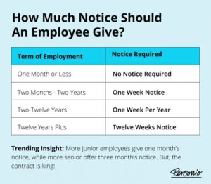 Putting in your two weeks’ notice means you’re informing your current employer that you’ll be leaving your job. This notice is typically given at least 10 business days in advance. Not every employer requires a two-week notice, but it’s been a common practice for decades. Usually employees give two weeks’ notice and the employer makes arrangements, adjustments, conducts an exit interview, and collects company property. In the past, it’s been more of a courtesy than a requirement.