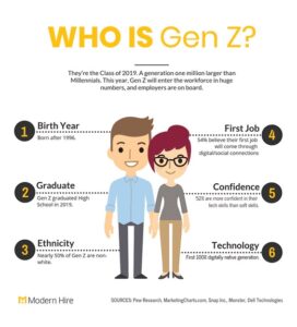 - Be sure to showcase diversity-In all your postings, ads, and branding material, let it be known your company favors a diverse workforce. It’s been said the Gen Z is the most diverse group yet.