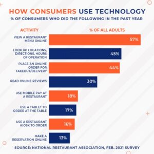 Restaurant operators agree that modern tech helps increase the overall efficiency of their businesses. According to a study conducted by Toast, 95% of restaurant owners say the use of technology improves the overall efficiency of their establishments. Additionally, 73% of restaurant-goers agree that technology enhances their dining experience.